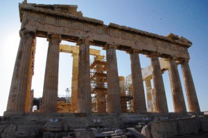 I’ve never quite decided where I sit on the “Elgin Marbles” controversy. Having seen these beautiful sculptures in the British Museum, wonderfully preserved and stunningly displayed, I can see the argument for keeping them in an environment where they can be conserved properly. And now having seen the damage done by pollution to the sculptures here, particularly the six Caryatids which adorn the Erechtheion, I’m not seeing much of a case for returning the Marbles to their original location outdoors and exposed. However that’s not to say they should not be returned to Greece.