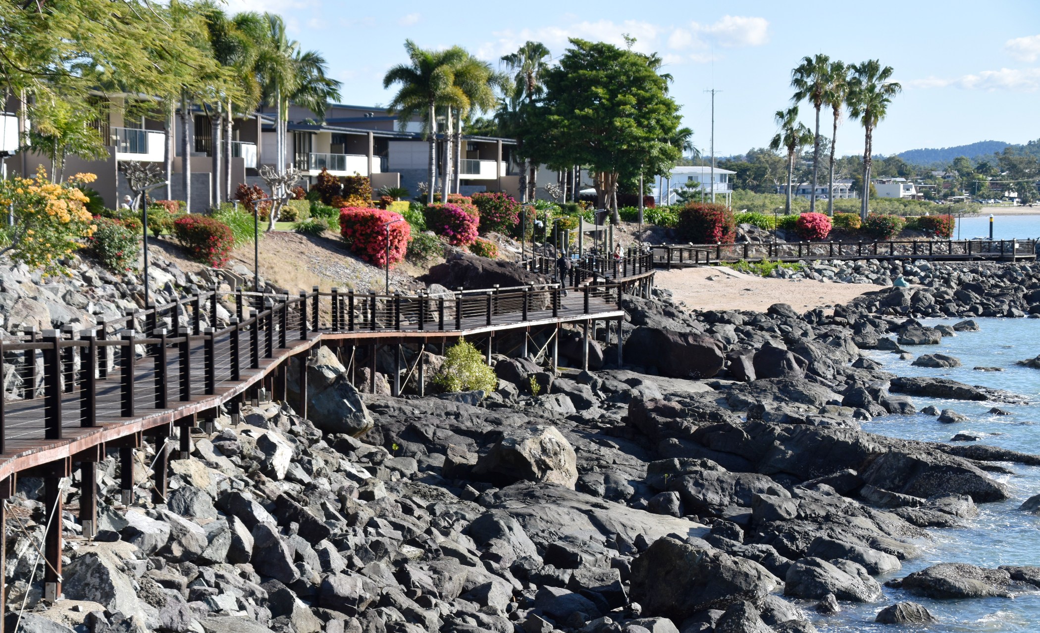The pace was leisurely as we crossed the little tidal creek and strolled past the swimming lagoon. The path meanders through the Coral Sea Resort and onto a short section of boardwalk.