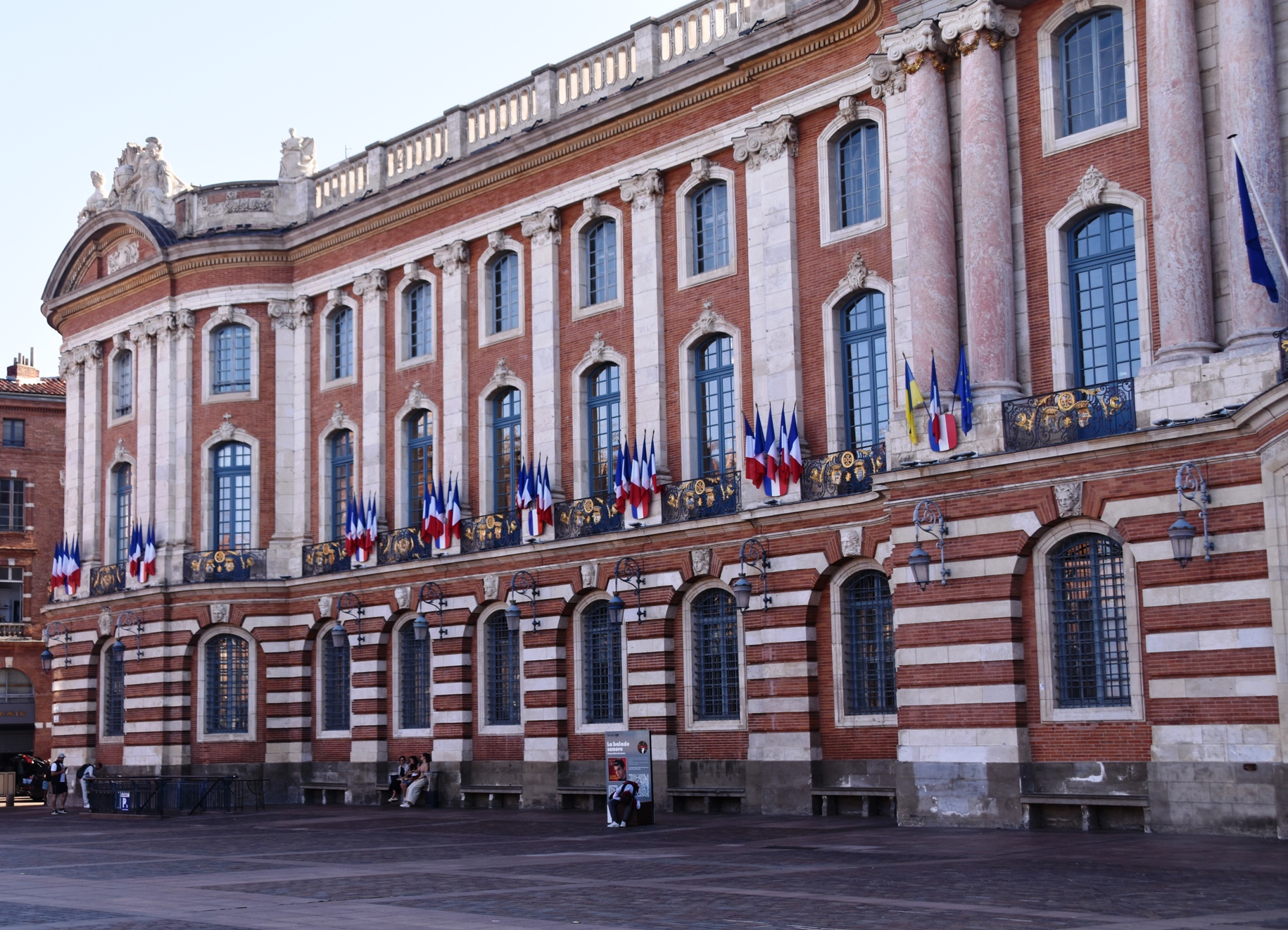 On our last full day in Toulouse, we left the apartment early. Everything here is very quiet until mid morning, and we enjoy the peaceful streets and the cooler temperatures. An extensive fresh fruit and veggie market was in full swing as we walked to Jeanne d’Arc metro, crossed the road, and entered the Capitole district.