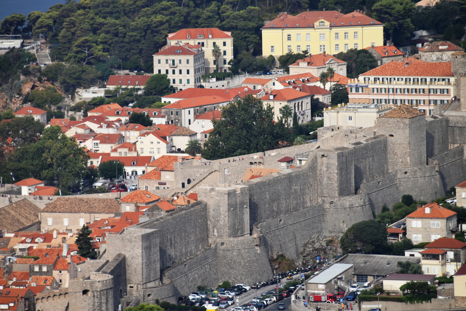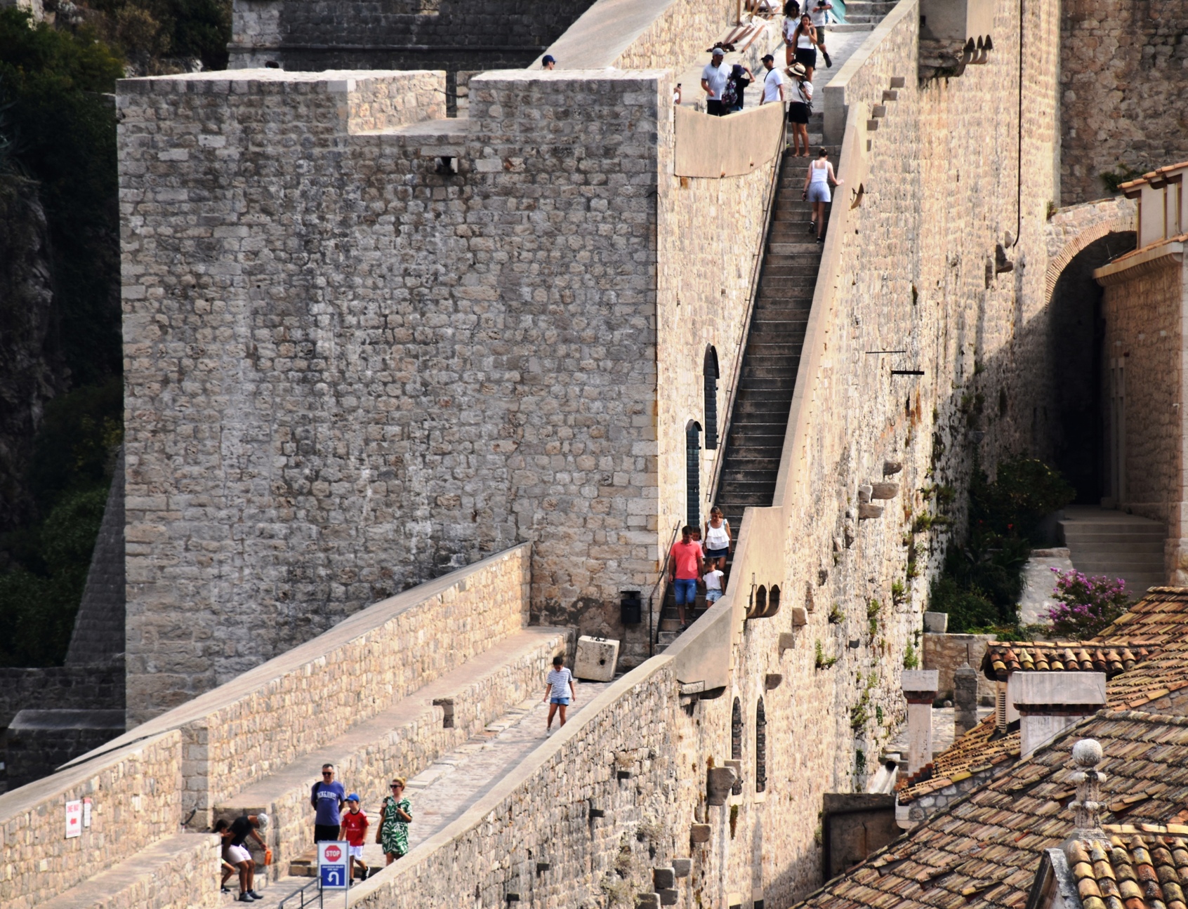 The tour finished at the Pile Gate at 9am, and we were free to explore on our own. We’d beaten the crowds, and had no queues at the gate, or at the entrance to the famous City Walls, so we headed straight up the very steep stairs and began the 2 km, one way walk. Looking down, Stradun (the main street) was almost empty.