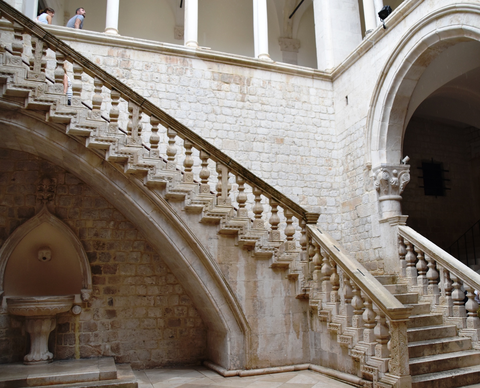 I made my way carefully up Stradun, also slippery on the marble paving. People were huddled anywhere there was a bit of shelter. I scurried from doorway to archway, like a drowned rat. Eventually I reached the Rectors Palace, a grand building which is now a museum. It offered shelter and toilets. It turned out the displays were rather interesting too. Many of the artefacts dated back to the 1300s, but my attention was most caught by the black and white photos taken during the 1991-92 war that eventually saw Yugoslavia broken up into the countries we know today.