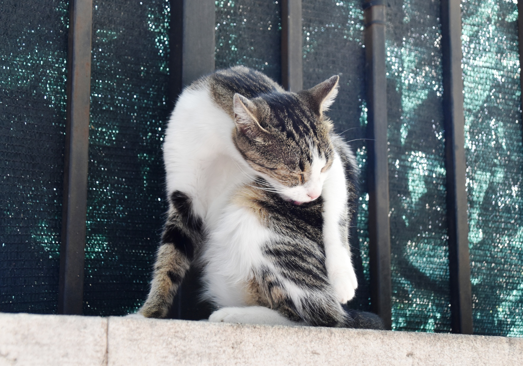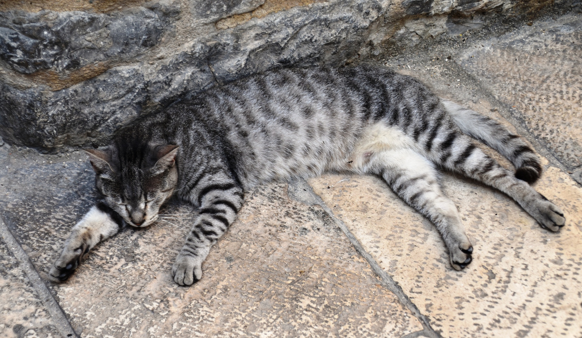 Back at water level, Ian headed back to the ship while I went to explore “old things”. I found another restorative gelato (biscotti this time), then wandered around Diocletian’s Palace, in the process meeting lots of cats. One of them was decidedly grumpy at having his picture taken, so he leapt out of his pot plant, and hid under a nearby shrub, pretending I couldn’t see him.